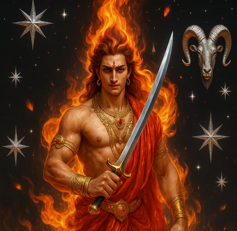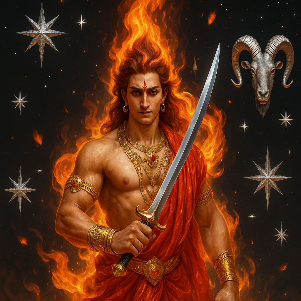 Krittika is symbolized by a sharp blade / knife, representing the ability to cut away negativity, illusions, and impurities. It is associated with mental clarity, purification, and strength.